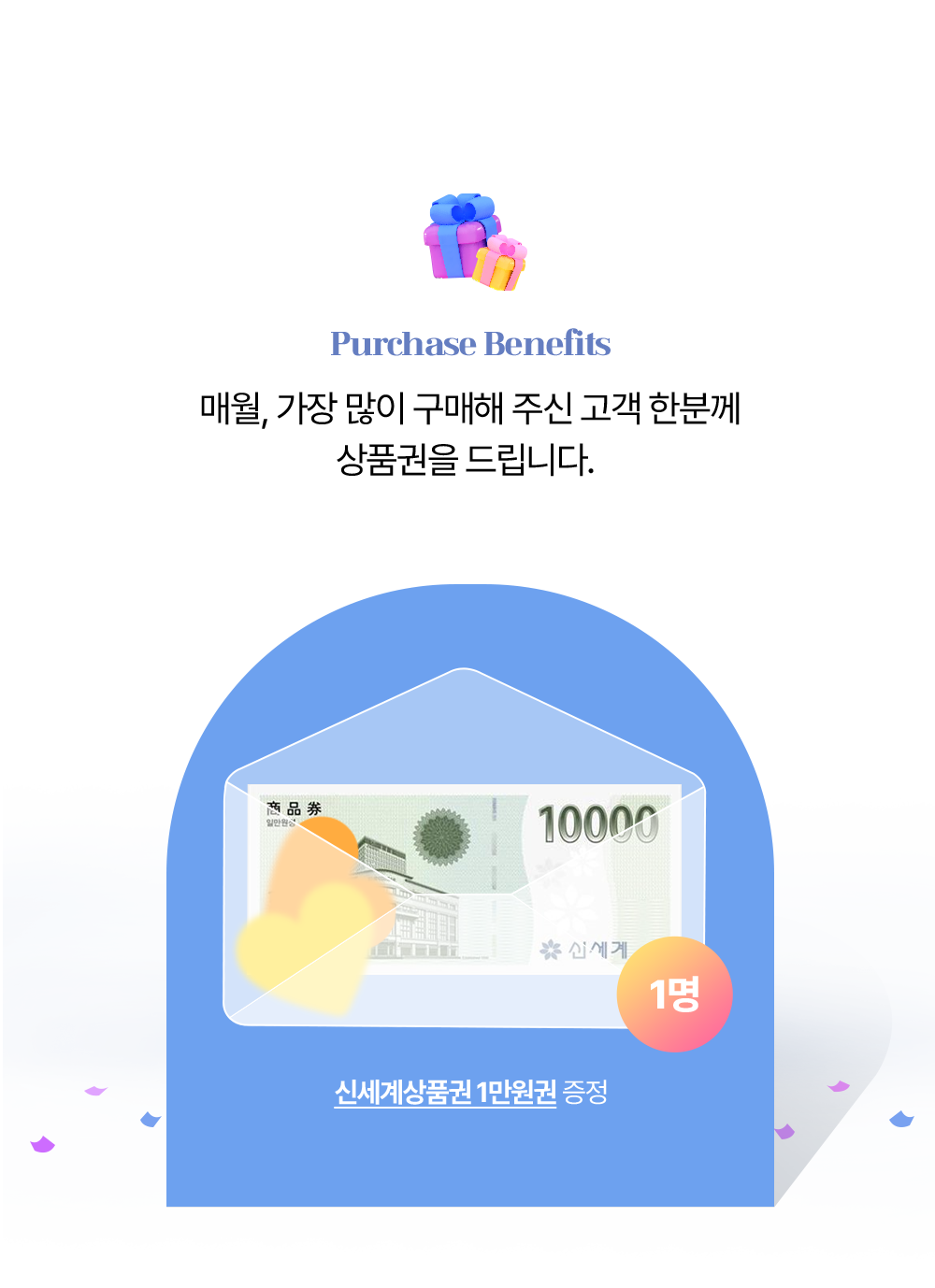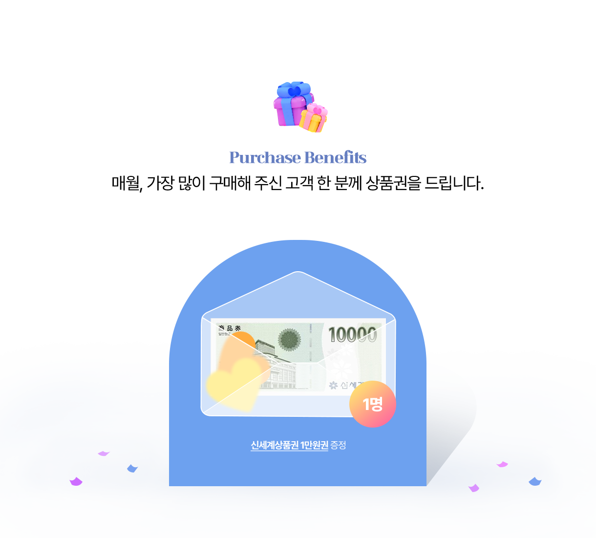 각 기간 동안 가장 많이 구매하신 고객님께 사은품을 증정합니다.