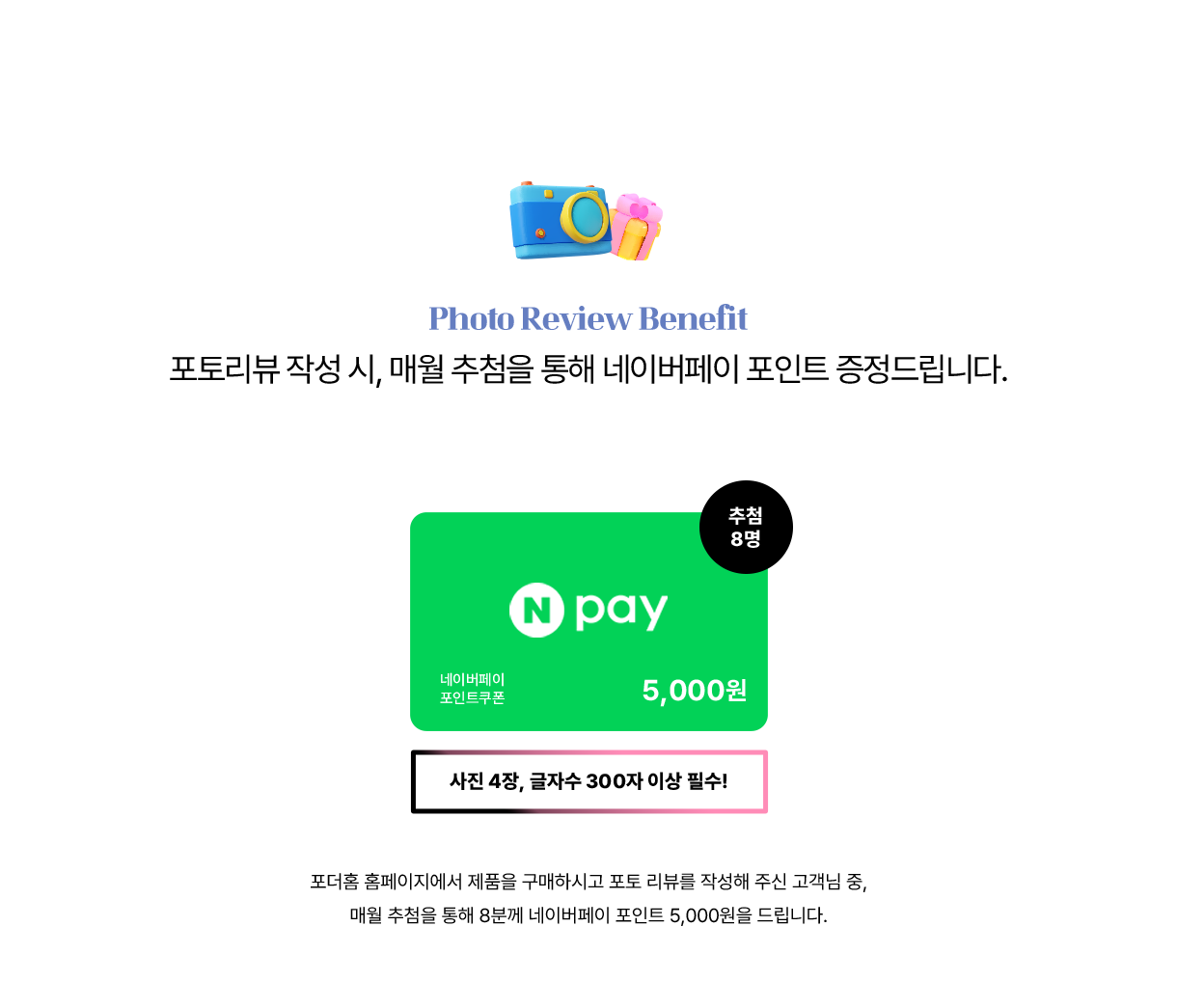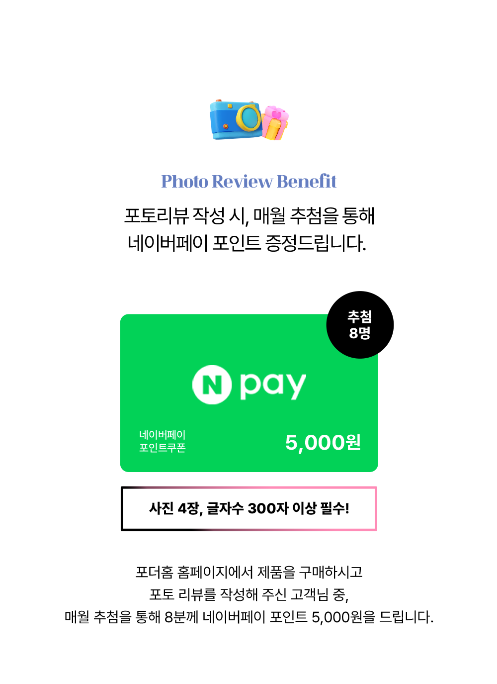 각 기간 동안 포더홈 홈페이지에서 제품 구매 후 포토리뷰를 작성해 주신 고객님 중
